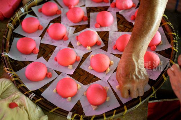 根据了解,面龟来源于中国古代的龟祭,取其长寿之意,素食者也能食用。九皇爷诞也少不了这种必备的吉祥寿龟,一般九皇爷诞的寿龟是黄色的。不过其实寿龟也可以做成其他颜色,其用意也有所不同。