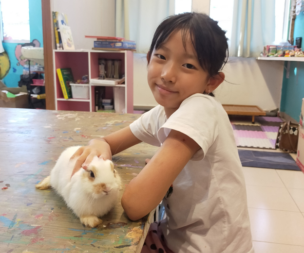 蓝维商在画室外养了兔子、蜥蜴等小动物,帮助学生增加美术外的科普常识。