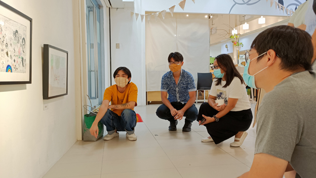 蓝维商解释,这样的想法主要是让家长尝试放低身段,用孩童的角度去看作品。同时,他在现场也试着与观众解释,蓝艺坊让孩子自由创作的教学理念,“一位家长听了我的一番话,突然有感而发说或许是他做错了,才导致孩子不喜欢画画。”