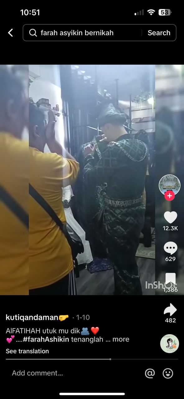新娘兄长莫哈末沙里尔说:”当我们看到丹尼尔穿上结婚礼服,独自坐在新人台上时,觉得很伤感。