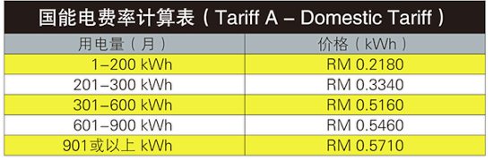 *Tariff B是指低电压商业地契产业电费率,比如SoHo、SoVo、SoFo和服务式公寓(serviced apartment)。如果每月用电量介于1-200kWh之间,收费是RM43.50;201kWh或以上是RM50.90。