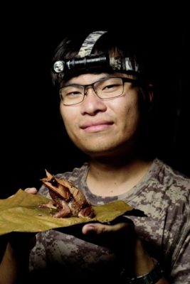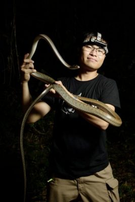 黄兆波热爱两栖类和爬虫类,他手中握着的是白腹鼠蛇。