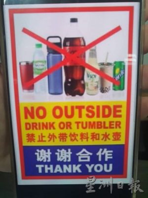 “鉴此,我们在茶室每张桌子,甚至墙壁挂著横幅‘禁止外带饮料和水壶’,提醒光顾的顾客了解我们的苦衷。”