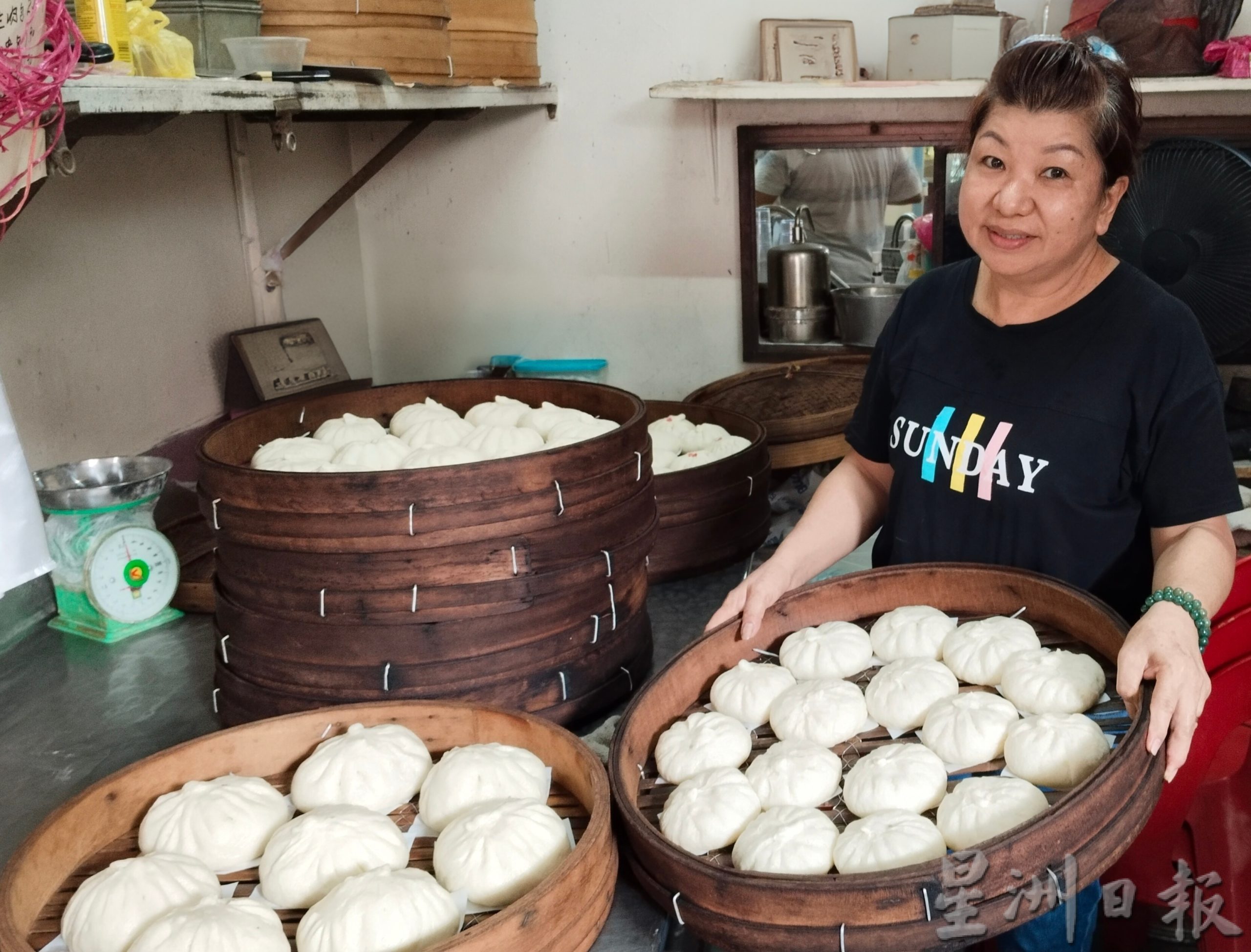 “我家公是海南人,很多传统的茶室都是海南人创立经营,先生一家以前住地摩时也是经营卖包点的茶室。我刚嫁过来的时候,早上在茶室开档煮水粉,下午就卖鱿鱼翁菜,做了一阵子后发现忙不过来,就把档口关了,专注经营包点及茶水生意。”