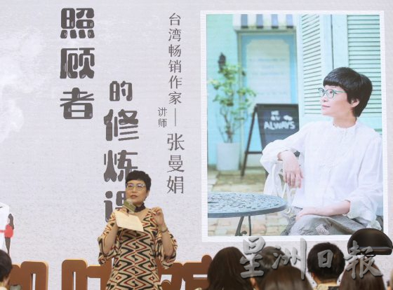 2024年4月6日,阔别马来西亚6年的张曼娟,在由富贵集团生命咖啡馆与星洲日报联办的“照顾者的修炼课”讲座会上,向所有“背着炸弹去拆除炸弹的人”喊话:“不要埋怨自己照顾得不够好,要活在当下,做自己。”