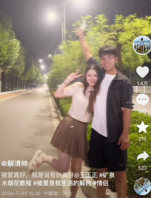 解清帅昨午在抖音“官宣”女友,写道“被爱真好,我是说有你真好”,还在网上发布与女友王正正的合拍影片。