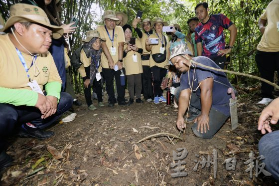 “这个捕兽陷阱可以抓老鼠,如果要捕捉体型较大的动物,陷阱就得做大一些。”山导车阿朗(Che Wan Alang)边带领一行人徒步穿越山林,边说道。他同时也是双溪东江村长,带领村民参与这个新的生态旅游项目。