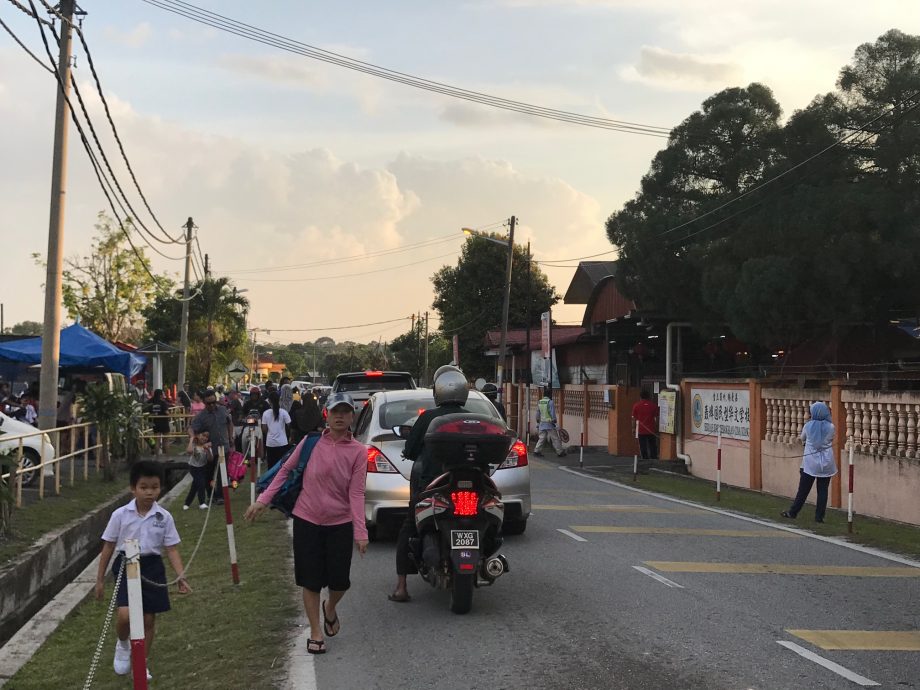 轰埠华小上下学时人头涌涌,村民都会十分自觉的放缓车速。(档案照)