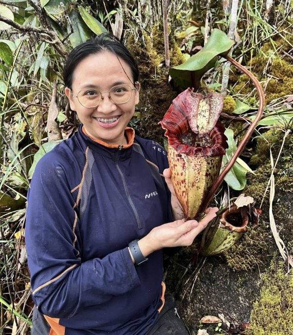 阿维雅娜展示新的巨型猪笼草物种。(图:锺耀强脸书)