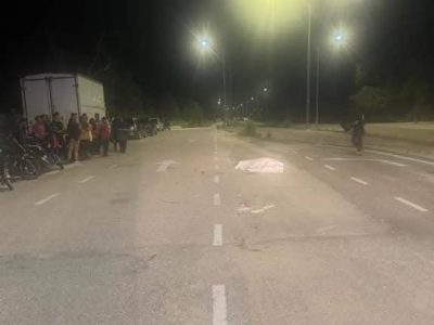 (关丹24日讯) 甘孟敦拉萨大道昨晚发生一起死亡车祸,一辆摩托车行驶途中怀疑为了闪避路上的游荡狗而失控翻覆,导致43岁巫裔男骑士头部受重伤,42岁的妻子则当场死亡。
