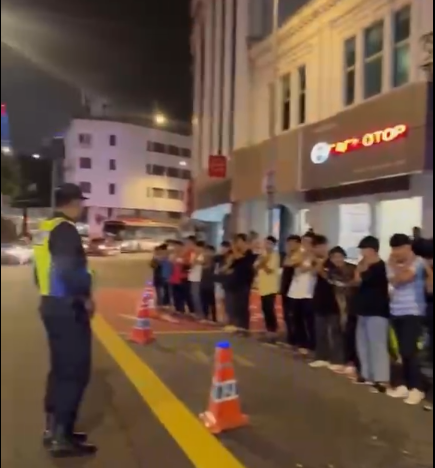 视频显示,这些青少年是昨晚在吉隆坡秋杰地区苏丹阿兹兰沙路迎接2025年元旦前夕设置的路障检查期间,因违反交通规则而受到处罚。