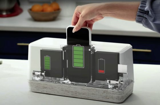 有趣地是,“Swippitt Hub”外形长得像烤面包机,里面拥有5块电池。如果一天换一次电池,那么可供5个人轮换使用。通过“Swippitt App”,用户还能够检查电池的健康状况和充电进度。