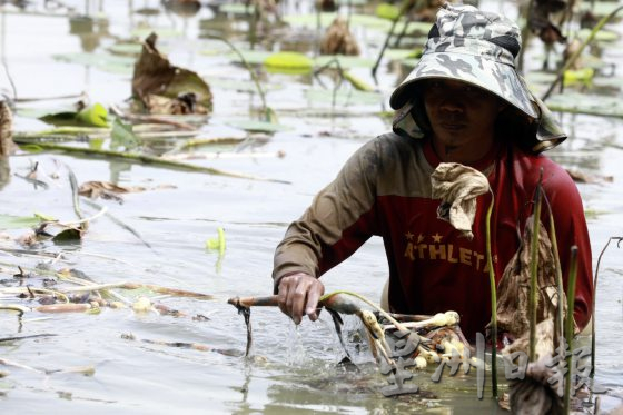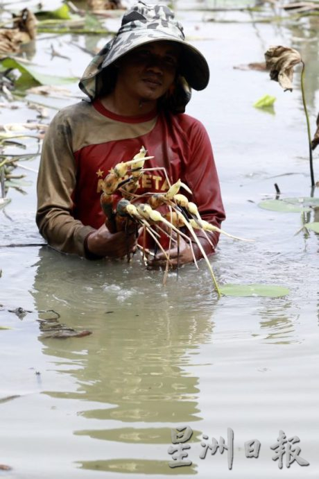 疫情期间,各国纷纷锁国,外籍工人被迫返国,以致欧永强面对有藕无人采收,必须自己亲自下水。