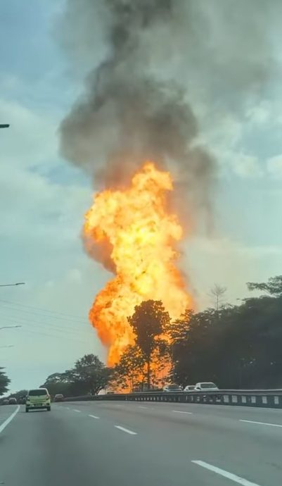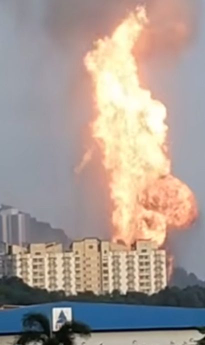 (八打灵再也1日讯)布特拉高原今早疑发生煤气输送管泄漏爆炸,导致大火喷出,熊熊烈火衝上天空,数百公尺高的火舌甚至比毗邻建筑物还高,整个犹如火焰山般灼灼闪光!
