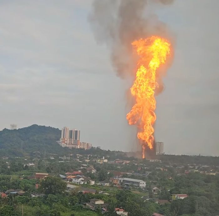 社交媒体脸书专页《蒲种大新闻》有不少网民陆续贴出大火燃烧的视频,由于大火不像燃烧高楼,有网民表示可能是煤气输送管爆炸所导致。