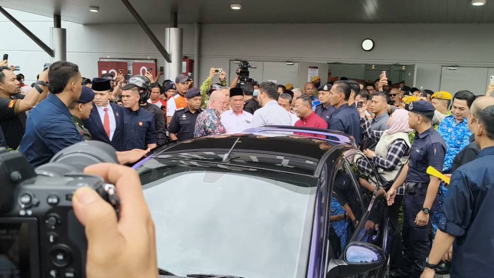 苏丹依布拉欣是在今早9时38分,亲自驾驶宝腾勇气(Satria)R3汽车抵达指挥中心。