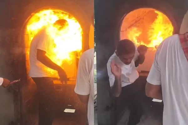 该名因罹患冠病逝世的54岁罹癌男子在他的帮助下,在当地的一间寺庙进行火化仪式。从现场拍摄的画面可以看到,杰克先是将棺木放进火化炉,随后在棺木上放上象征告别的鲜花,没想到火化炉却突然喷出大火,导致来不及逃生的杰克遭到火舌猛然袭击,整个上半身都被吞噬,因此全身多处严重烧烫伤。