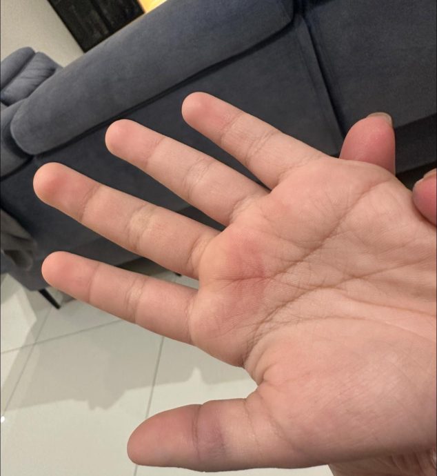 (关丹22日讯)一名家长控诉,其就读小学的女儿因未能完成作业,遭学校老师体罚至手掌淤青肿胀,令家长痛心不已。