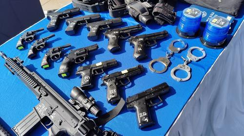 他说,警方在行动中起获的假枪包括5把冲锋枪、一把散弹枪、3把左轮手枪、5把半自动手枪,以及2副手铐,其他物品则包括警服、警察外套、警靴、巡逻车警灯,以及警察路障牌;警方相信他们都是透过网上渠道购买这些物品。