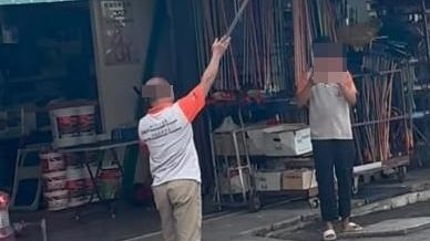 (北海9日讯)脸书今早流传1名男子在五金店外,挥舞引起网民不满,该店东主澄清,他并没倒挂国旗,当时只是与员工测量