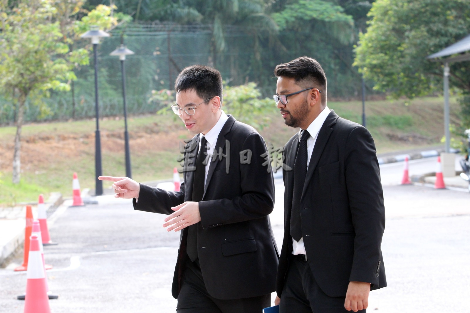 被告的两名代表律师戴英峰(左)和杰森安东尼正进入法庭。(陈世伟摄)