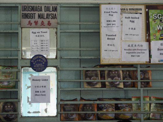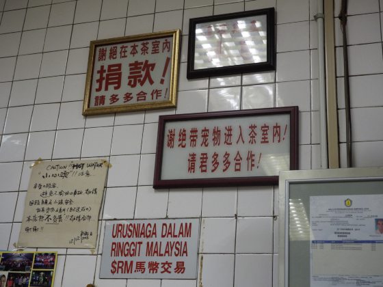 我喜欢造访马来西亚一些老茶室,除了餐饮美味之外,还能发现一些时代变迁的线索,像是墙上警语,每块告示牌上的字体、诉求都不同,光这些警语就能告诉我们许多来不及参与或当下正在发生的事。