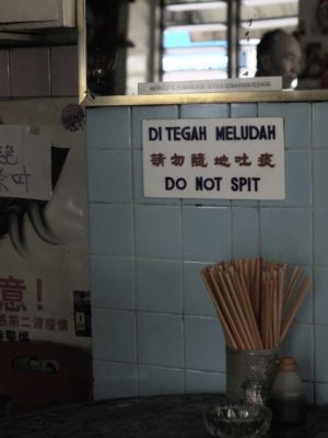 在中国,自古以来吐痰就是普遍的事,清代一般人家中都备有痰盂,视为理所当然。槟城《城视报》主编告诉我,马来西亚早年人们缺乏卫生观念,有吐痰习惯,一些老茶室还曾备有痰盂供客使用。朋友Yuki则跟我说,她就读华小的“道德教育”课程中,也教导学童“不可随处吐痰”,随着时代进步,已经少见随地吐痰。