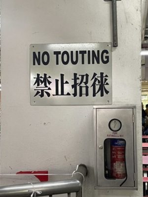 新加坡小贩中心内,出现“禁止招徕”的警语,说明曾经发生的事。
