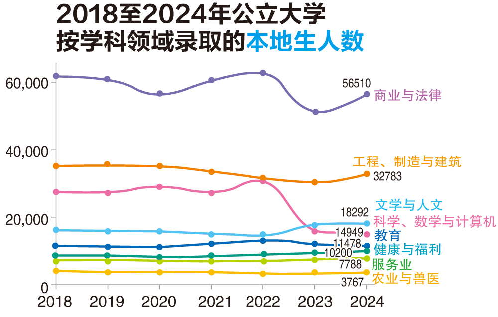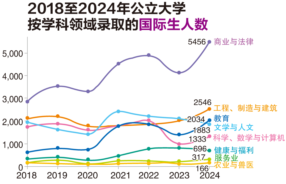 “2024年,公立大学在籍生中,国际生的人数达到5万3322人,创下历史新高。”