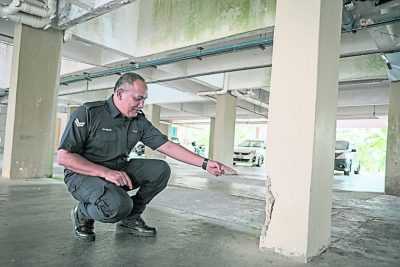 他提醒,建筑的柱子受破坏长期不修很危险,因为柱子会失去承重力,当移动沉重的家具或比较重的物品时,底板可能会破裂,使到整个楼层下陷。