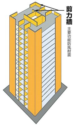 剪力墙也称为耐震壁、抗风墙,是一种用于建筑物以抵抗地震或风力的结构墙。一般上建在高楼建筑的四个角,由于其劲度很大,能够吸收地震能量,减少建筑物的损坏,因此在建筑耐震设计中扮演重要角色。