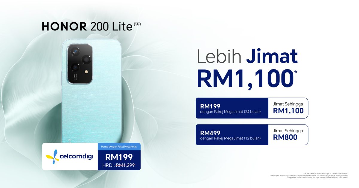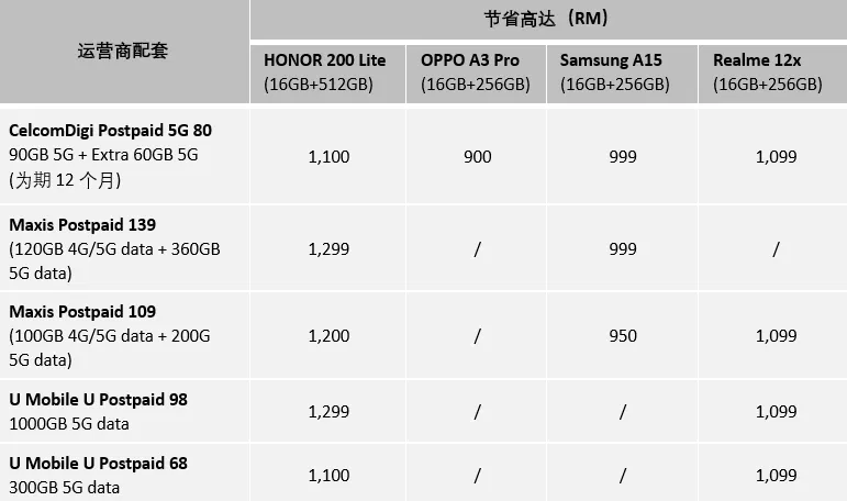 不管是哪个运营商配套,HONOR 200 Lite都是节省最多的机型,最高可达RM1,299!几乎等同于免费送手机了!!