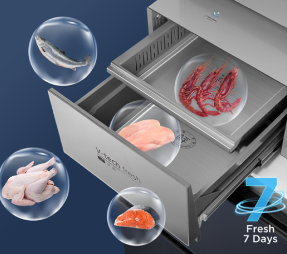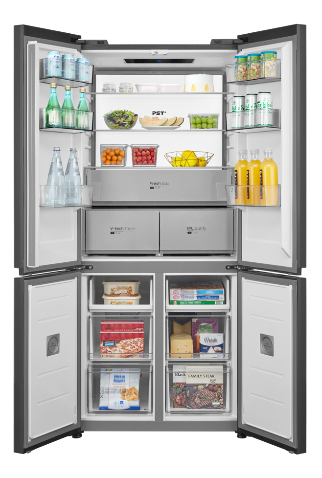 功能上,INSTA-FIT 同样毫不妥协。它搭载 无霜多重气流系统(Multi Air Flow),确保冷气在每一层均匀分布,避免结霜或温度不均。再配合 变频压缩机与变频风机 的组合,冰箱能够在低能耗的同时维持稳定的冷藏与冷冻效果。无论是大量蔬果,还是需要深度冷冻的肉类,都能获得持久新鲜的保存环境。