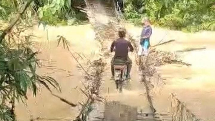 加叻新村后山吊桥被淹没 仍冒险使用进出