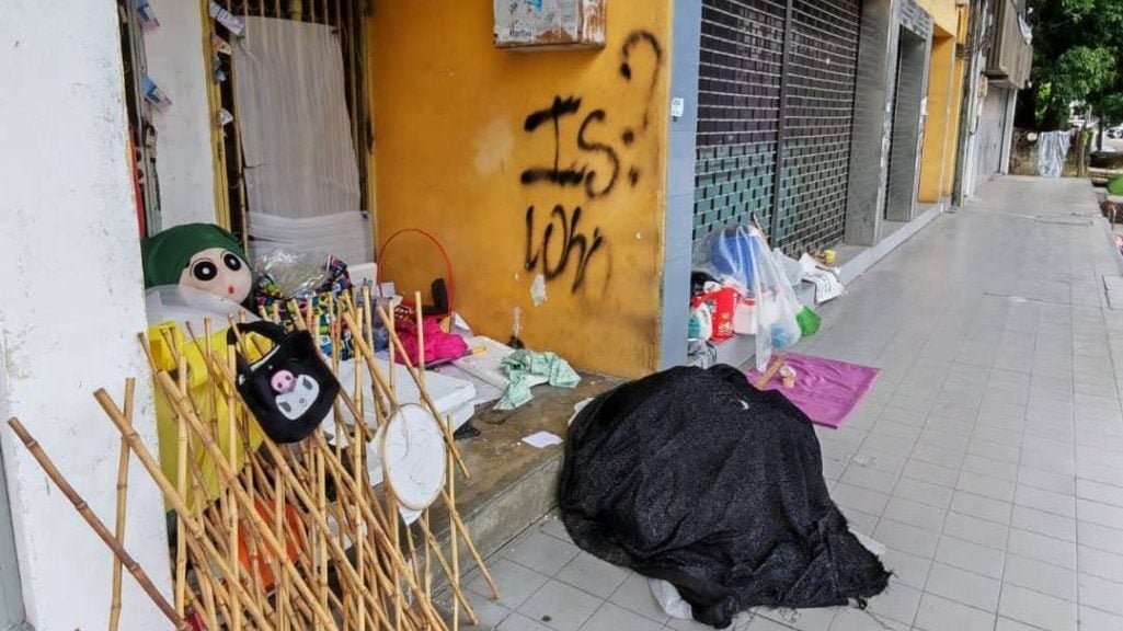 出现流浪汉 渠盖电缆盖被偷 怡胡申路 商家忧心