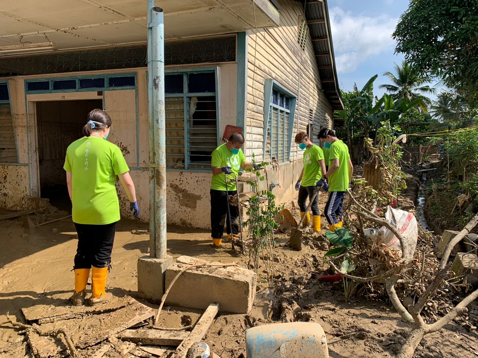 27日清晨,雪州东禅寺的40名青年和佛学院学生,加上数名芙蓉和马口的佛光青年,也在东禅寺法务当家如音法师、慧护法师、有宗法师的率领下出发前往知知港,与先前的团队会合,大家一起发挥青年的力量,协助当地村民进行打扫和善后的工作。