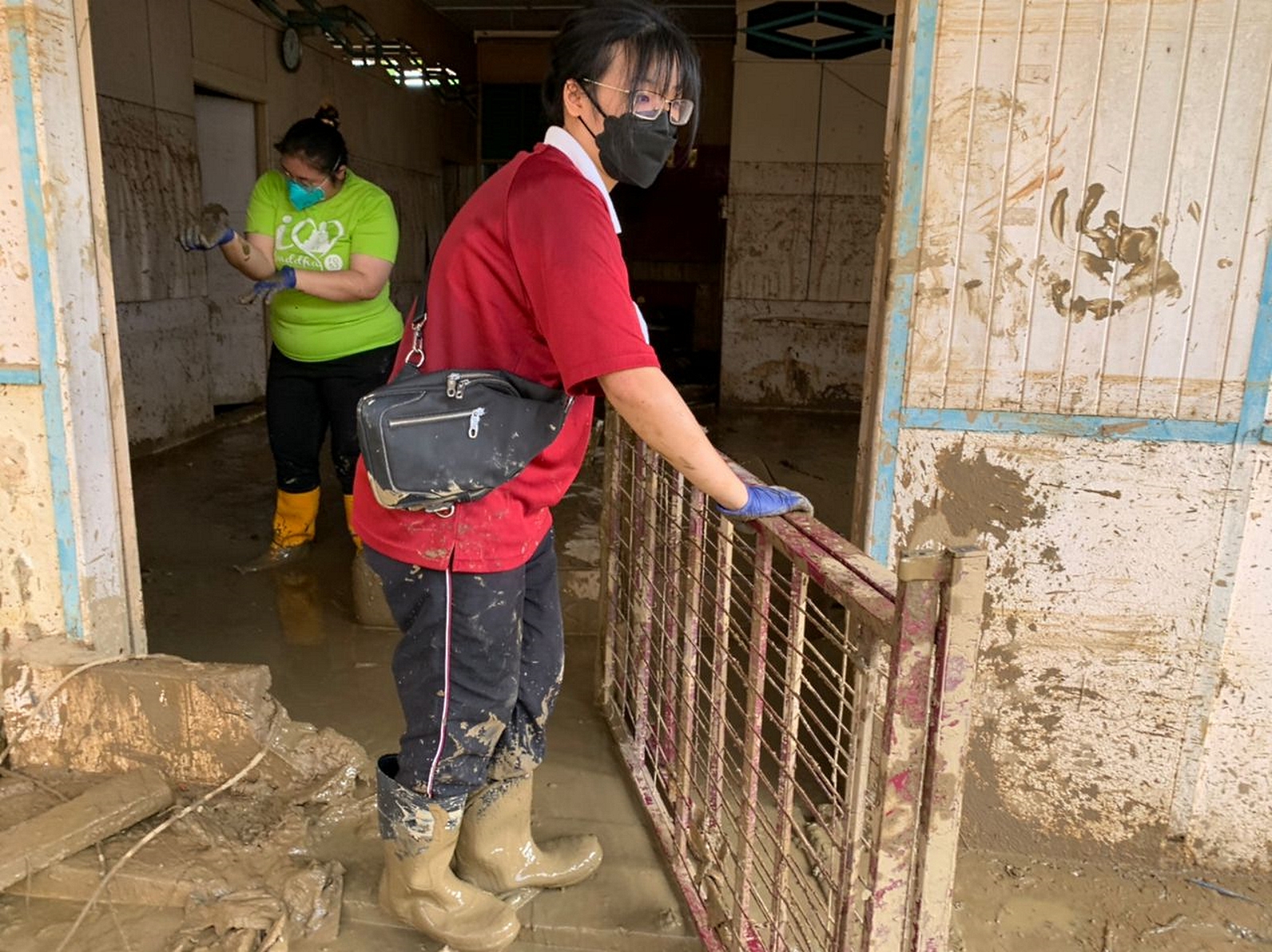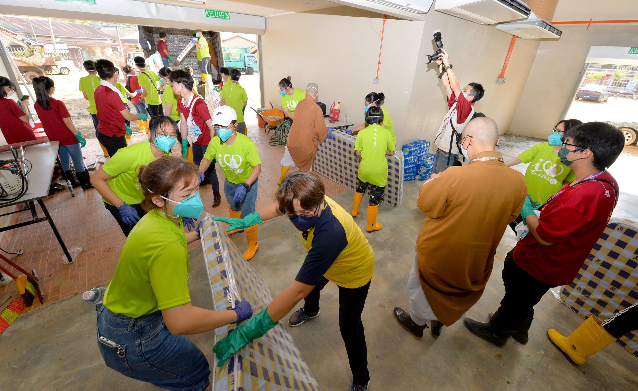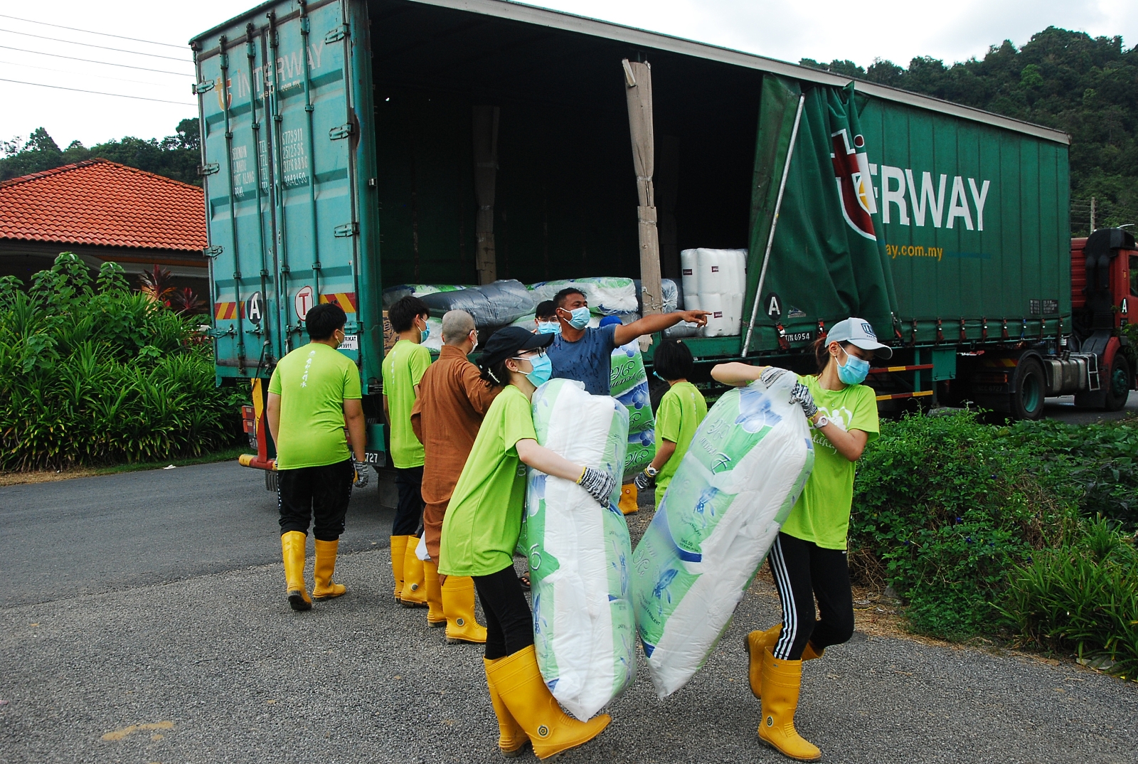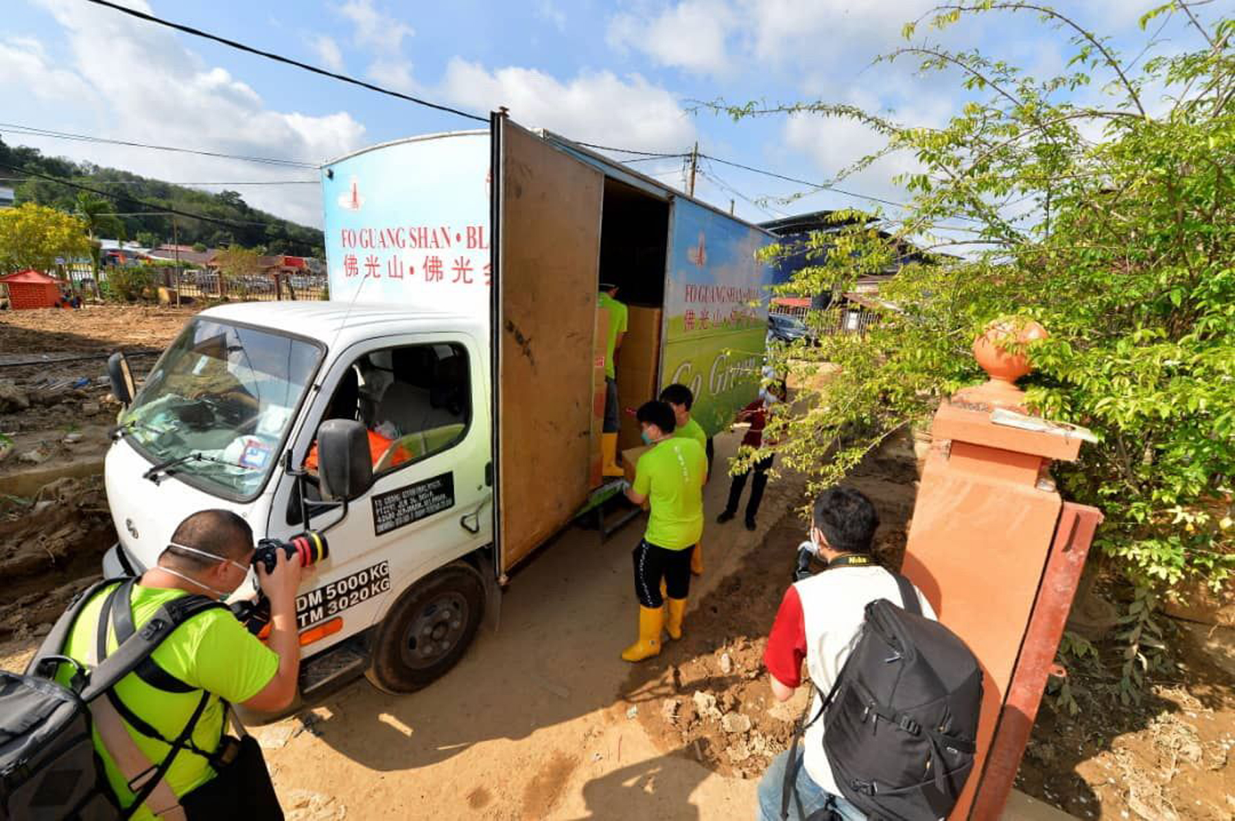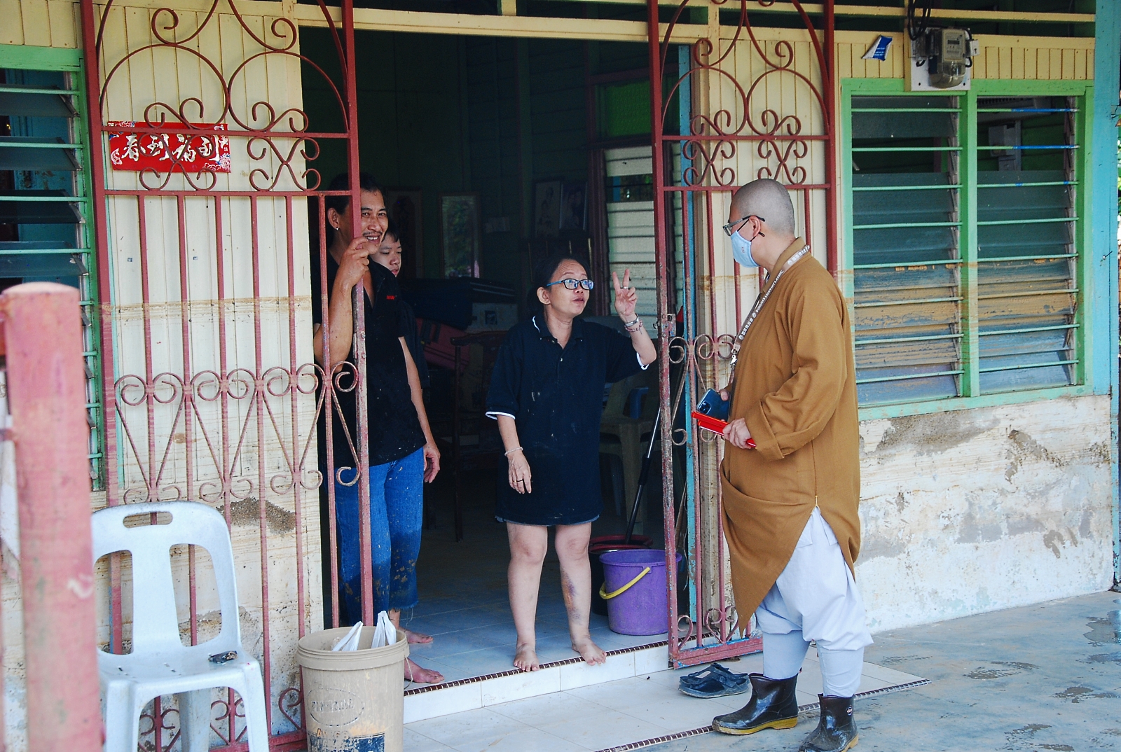 当佛光青年进入知知港新村及河沙坝新村,协助灾民清理环境之际,国际佛光会马来西亚中马协会会长拿汀杨翠莲也率领芙蓉分会多名义工、马口分会长会长丘岫桦等,于27早上带着一批物资进入灾区,与如彬法师等佛光青年大队会合,一起分发给有需要的灾民。