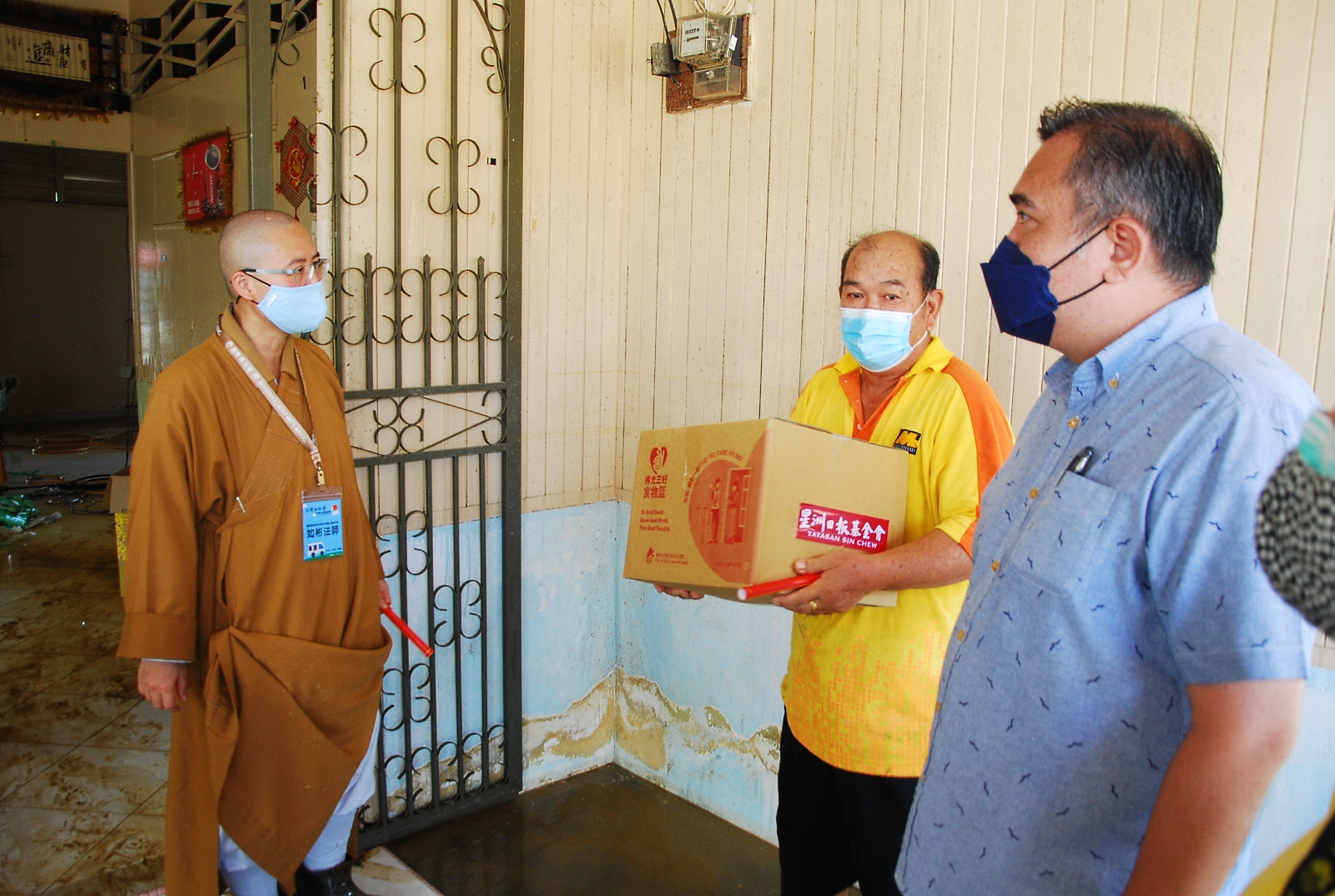 此外,位于日叻务北部山区内的甘榜真纳是另一个重灾区,在水患发生后逾48小时,曾经历水、电及通讯全断的情况,而且对外道路一度中断。在灾后第四天,马口禅净中心当家如育法师率领数名马口佛光分会理事率先进入甘榜真纳了解灾情。