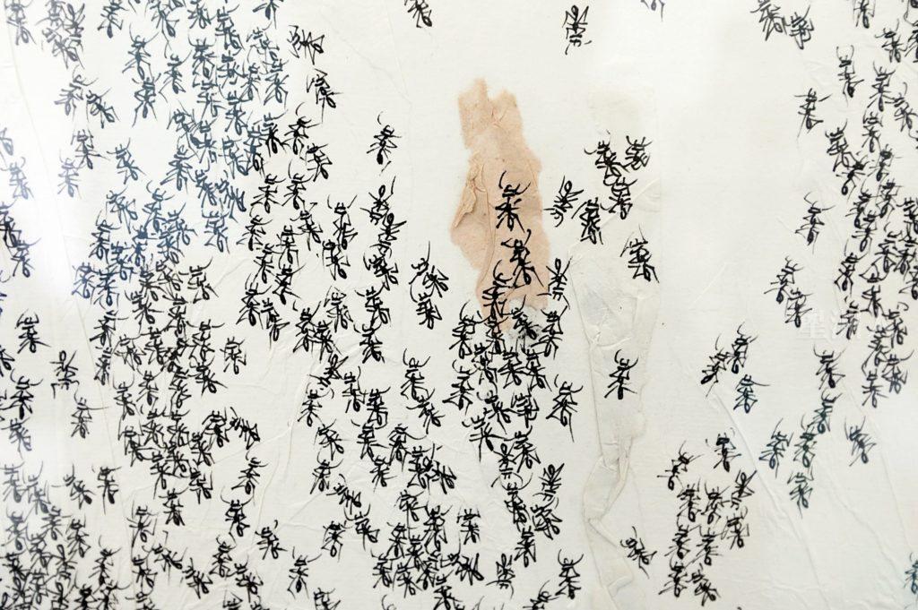 我的艺术符号是蚂蚁。我画蚂蚁并观察蚂蚁,我发现蚂蚁和地球上的人类一样,彼此皆是众生中脆弱的微尘众,努力生存之余,也滋养地球其他生命,进而缔造希望。所以,勿以踩死一只蚂蚁不以为然,众生皆平等,对人慈悲时,也该对细小的生命慈悲。