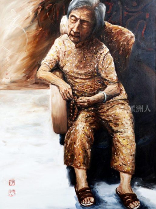 我后来在巴生开了「博雅艺术中心」,几经风雨,终于在1991年稳定下来。那一年,妈妈72岁,我送了72朵康乃馨给她,并邀请爸爸和妈妈来为我的画展开幕、剪彩。我在画展上带着她来到每张画面前,给她说画。那是我从事绘画25年以来,唯一一次含着眼泪,带着微笑看画导览。我多么希望自己就是妈妈的眼睛,永远陪着她看世界!遗憾的是,当时没有机会把这画面用影片记录下来。