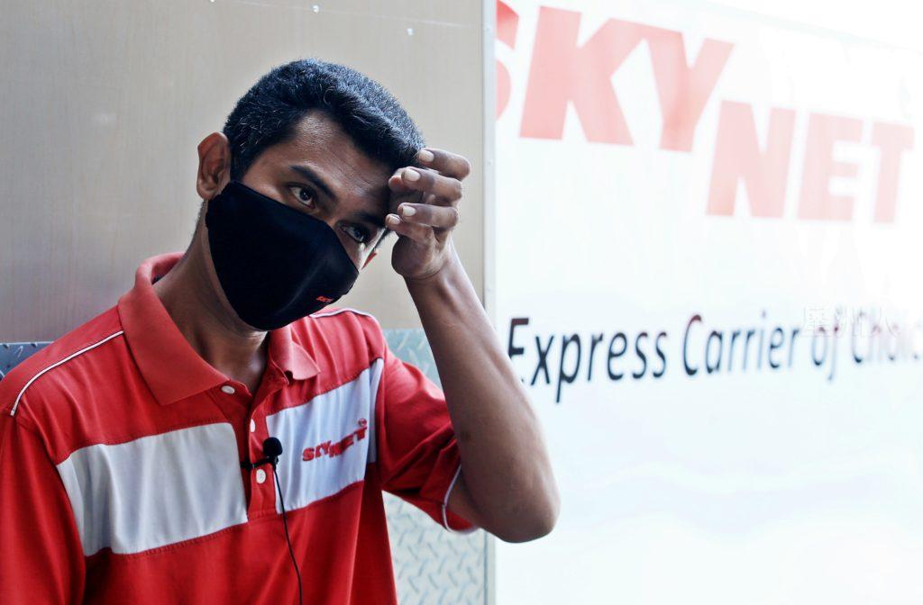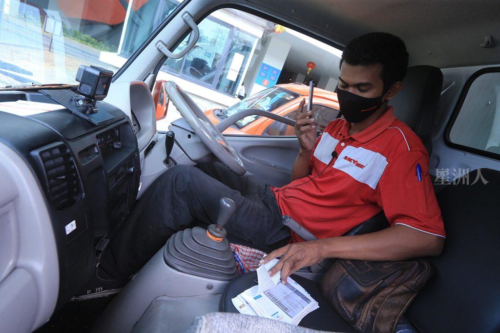 莫哈末朱基菲(42岁),当快递员两年多,早上8时抵达公司,就开始点算已经分配好负责地区的包裹,扫描货物编号,排序搬上罗里,然后就开始一天的送货工作。.