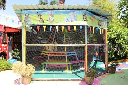 彩虹村内的迷你动物园,还有个“猫咪园地”,饲养逾20多只的猫,等待有缘人来领养。