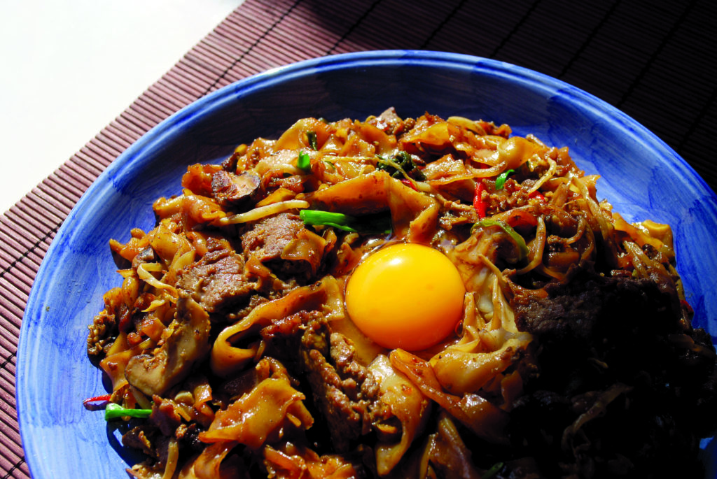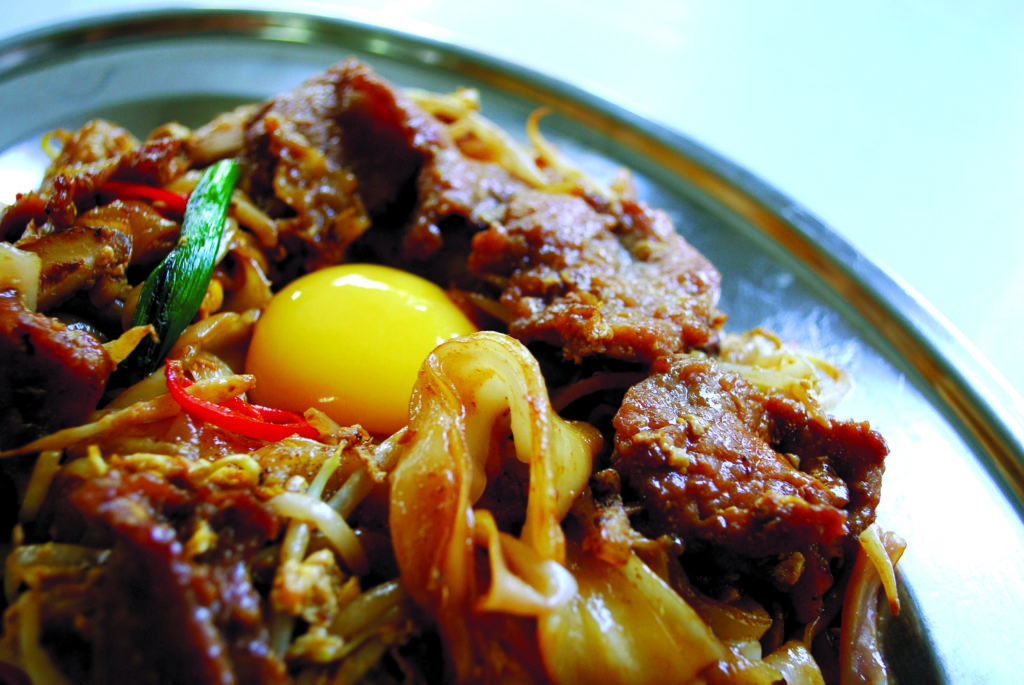 怀念的童年鸡蛋饭,就是在热腾腾的白饭上简单地加入几滴熟油,浇上几圈生抽,再打进一粒家里母鸡刚生下的鲜蛋,拌匀后就是又香又营养的早餐了。也曾在童年的街场市集见过炒鲜蚶粉的潮州老阿伯,单手打开一粒鸡蛋舖在盛碟后仍在冒烟的粿条上,呵呵呵地说是吃起来口感比较润滑顺口,滋味更加浓郁蛋香;此外,同样的手法也运用在雪隆一带的炒福建面上,即使到了现在,那家位于茨厂街区驰名的客家瓦煲老鼠粉,仍旧在炒香的肉碎老鼠粉上添加一环月光,映照出一瓦煲市井美味的传统风华。