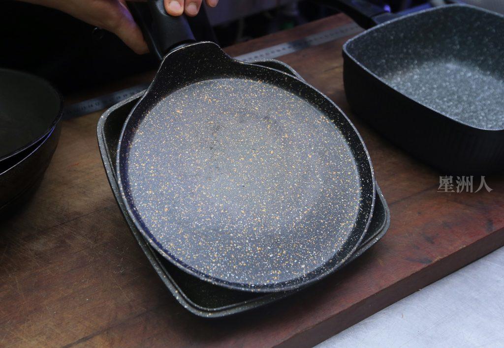 如果对比直径24cm的圆形和四方形不粘锅,后者就占了一些面积优势。由于面积较大,四个角落的空间足以填补较多的食物分量。他说,以往要找四方形不粘锅非常困难,如今网购就能送上门。