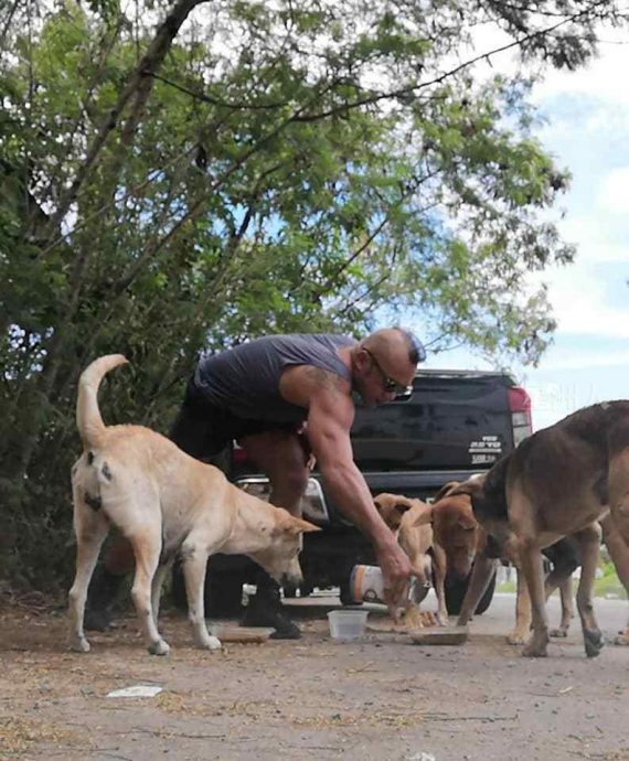 在沙巴首府亚庇,自去年实施行动管制令以来,从未间断过喂食及拯救流浪狗猫的穆斯林综合格斗选手,在收入不稳定及斋戒月期间,依然风雨不改地守护流浪动物。