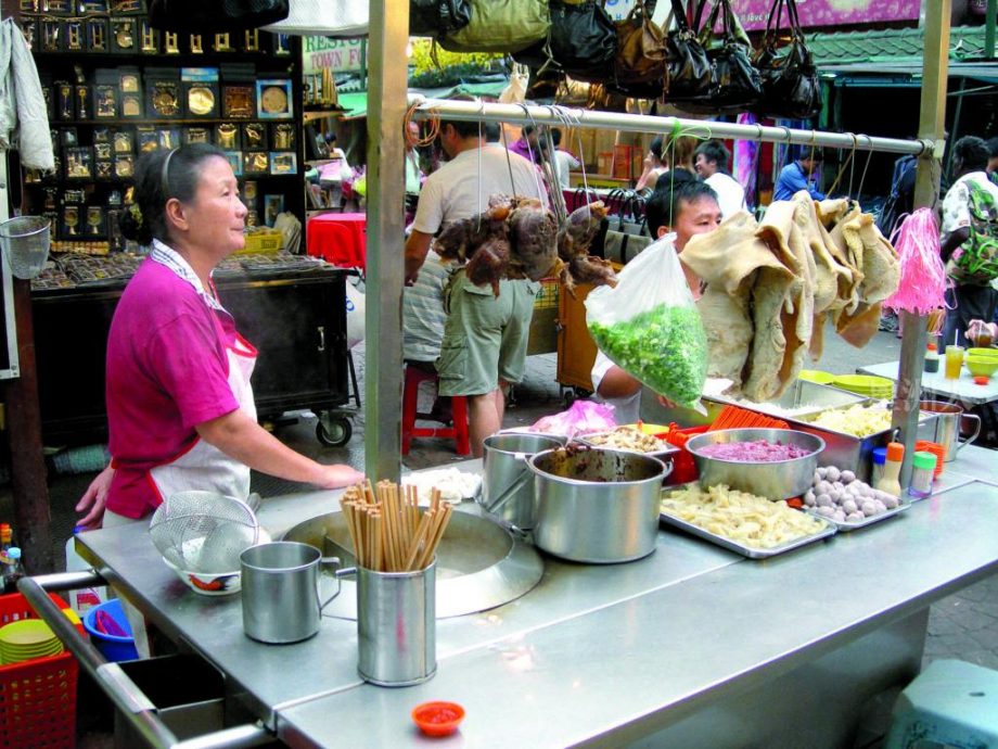 从苏丹街拐进思士街,许多人都曾经以大众书局作为地标。千禧年以前书局对面有间新联丰茶室,里面一摊苏记客家面,由大埔人杨氏夫妇及两名女儿经营,远近驰名,尤其大埔式的肉碎老鼠粉(干捞)、酿豆腐和酿蚝豉,是许多知食前辈一提起便手舞足蹈的最爱。后来杨氏逝世,便交由女儿经营,1997年茶室易手,两姐妹迁到茨厂街尾,两年后大姐撒手西归,千禧年时妹妹再搬回新联丰旧址的后巷设摊,仍旧以新联丰姐妹档作为招牌,而当时新联丰店面已改为中华楼。