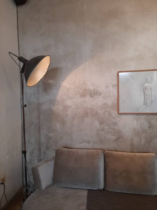像是视频里一闪而过,如今内芯改成电灯,摆放在桌上的蓝色煤油灯;3O年代的方型电灯开关和6O年代英国制的圆型开关;带有老式咖啡店味道的某咖啡厂竹帘;老旧的床头柜改成的小书柜;还有一盏早期的路灯,被他们改成电灯,悬挂在房顶上。