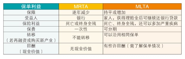 2)房贷保险:递减式房贷保险(MRTA)VS 定额式房贷保险(MLTA)