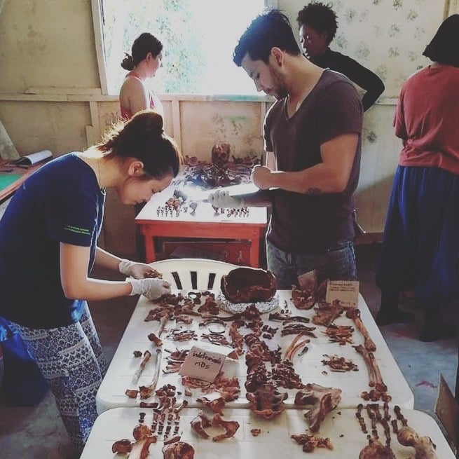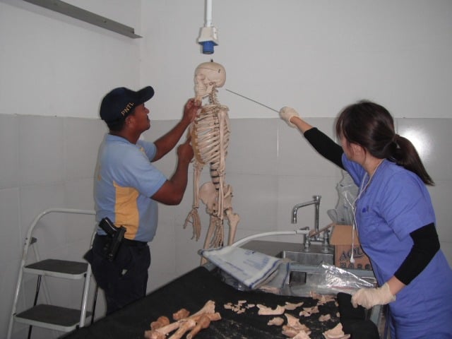 从2015年开始,我每年6至8月都会去当地一个教会的坟场工作,曾经见过一个墓地有几十副尸骨。全部挖出来后,把各部位的骨头分类,然后再组合成一副尸骨,分辨性别、大人、小孩。如果骨头保存得好很容易取得DNA,难就难在找家人做DNA配对,有的根本没有家人可配对。