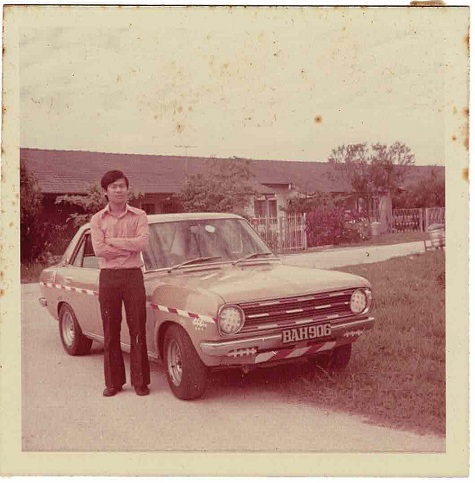1973年,22岁的他买了一辆Datsun 1200,新车落地三个月就在峇都知甲赛道参与了第一场赛事——雪兰莪大奖赛(Selangor Grand Prix),并获得第二名。他说,一般赛事会采用经过改装的专业赛车,不过,由于他是参加量产车(Production Cars)项目,因此车子必须是完全没有改装。作为赛车新手,初次登场便获得亚军可说是一个莫大鼓舞。他突然发出爽朗的笑声,坦白地对我说,那个项目只有2位选手,对手是一名资深车手,顺理成章获得冠军,他位居第二,同时也是最后一名。